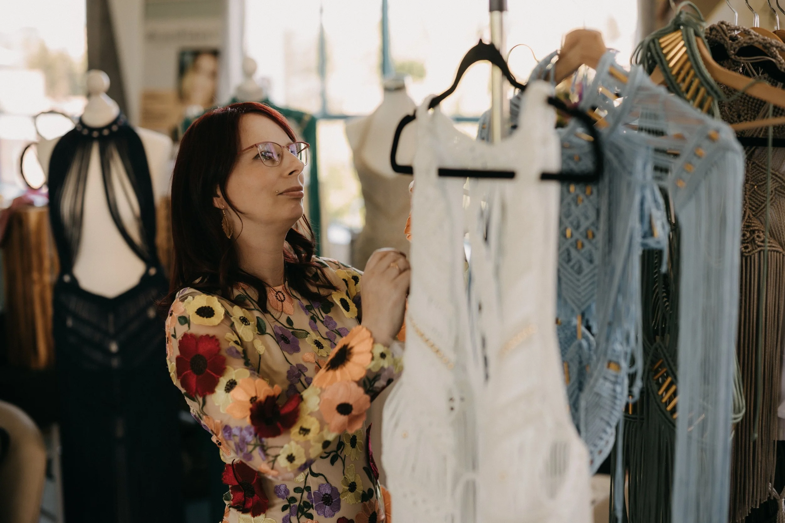 Ich habe mich auf modernes Makramee spezialisiert und bringe mit dieser traditionellen Knotentechnik frischen Wind in die Modewelt.